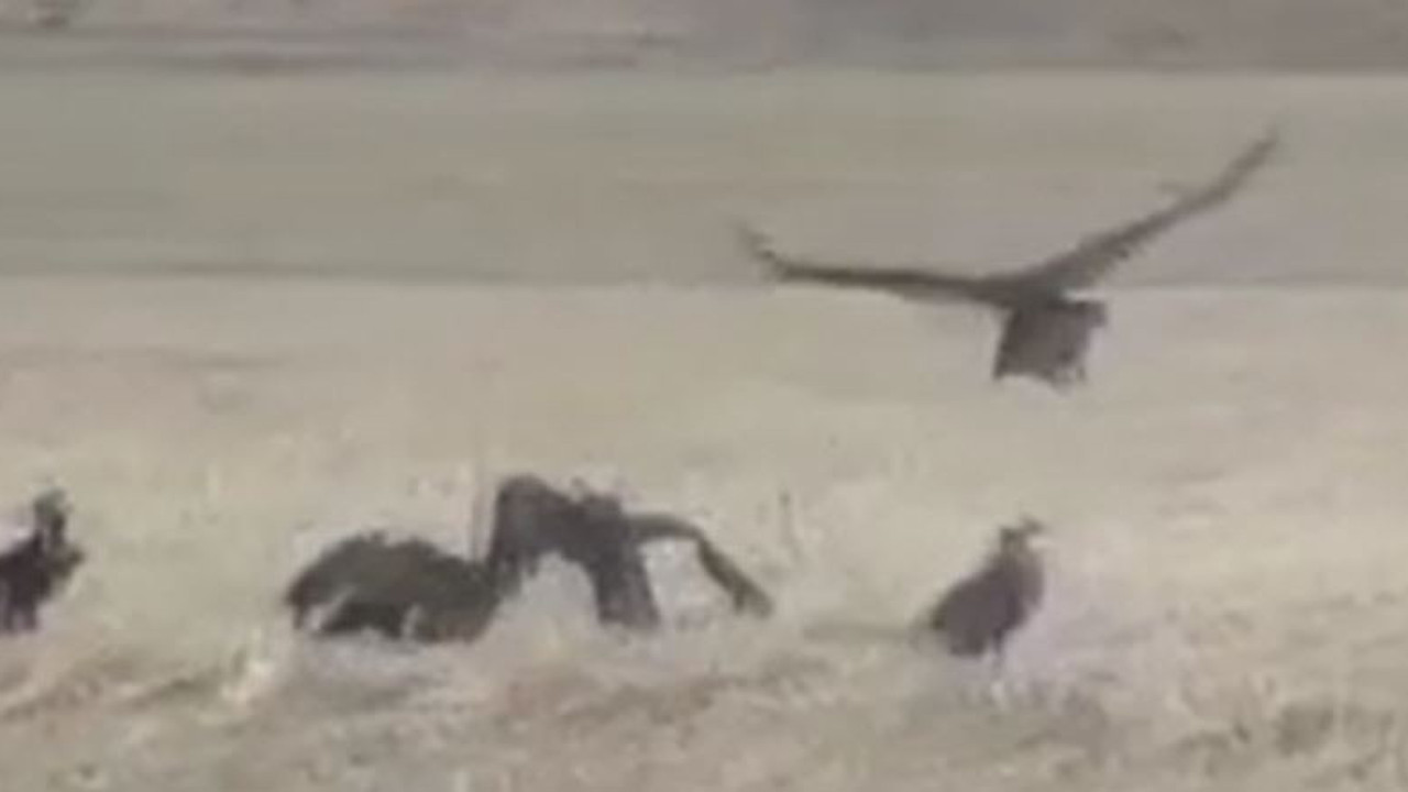 Çekilen görüntülerde akbabaların sürü halinde dolaştığı görülürken vatandaşların bu durum karşısında şaşkınlıkları da kayda geçti.