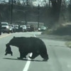 Ayı ağzıyla ensesinden tuttuğu bir yavrusunu karşı caddeye geçirdi. Diğer 2 yavru ise ilki kadar uslu değildi. İkinci yavrusunu da ağzıyla ensesinden tutarak karşı caddeye geçiren anne ayı, 3''üncü yavrusunu almaya giderken, ikinci yavru da kardeşinin yanına gitti.