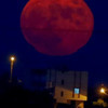 Antalya'da akşam saatlerinde beliren dolunay, güzel görüntü oluşturdu.