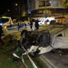 Çarpmanın etkisiyle hızla savrulan Audi, trafik tabelaları ve refüj bordürünü parçaladıktan sonra ters döndü.