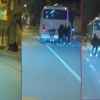 Akşam saatlerinde trafiğin yoğun olduğuAntalyaCaddesi''nde iki gencin hareket halindeki otobüsün arkasına, bir gencin de otobüse tutunan arkadaşına tutunarak yolculuğu çevredeki vatandaşların ve araç sürücülerinin yüreğini ağızlarına getirdi. Gençlerin tehlikeli yolculuğu şans eseri kazaya sebebiyet vermedi. O anlar, cep telefonu ve araç kamerasına yansıdı.