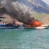 Adrasan Koyu'nda demirli bulunan ve turizmci Mehmet Akkaymak'a ait 'Kaptan Adrasan' isimli tur teknesinden dumanlar yükseldi.