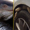 Arkadaşının "Geri çek geri çek. Çıkmaz ki oradan" sözleri kayda yansımış, hayvanın ayak tırnakları ile araç lastiğine tutunması ve çıkmamak için direnmesi görüntülenmişti. .