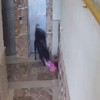 Öte yandangüvenlik kamerasına yansıyan görüntülerdeE.B., köpeğin saldırısından kendi imkanlarıyla kurtulmaya çalışıyorancak köpek bacağından ısırarak sürükleyip dışarı götürmeye çalışıyor. O sırada E.B.''nin bağrışmalarını duyan ablasının gelmesiyle köpek kaçıyor.