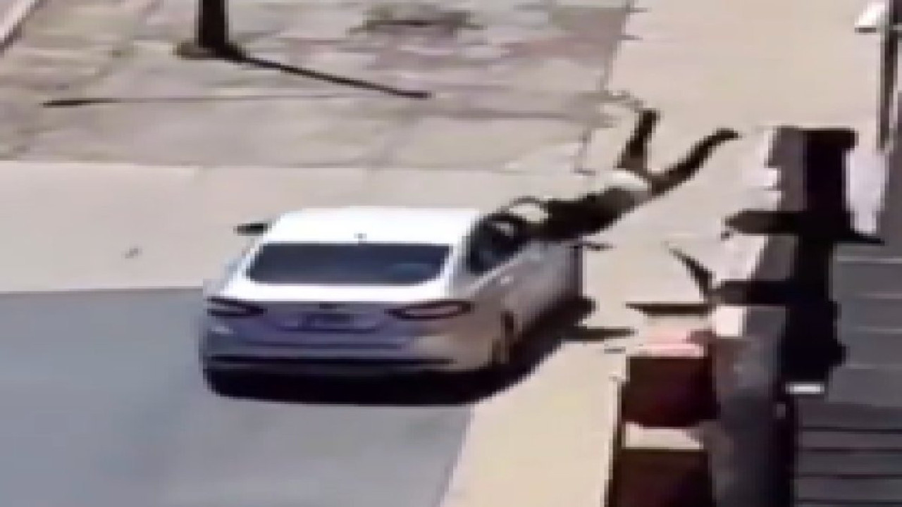 Görüntülerde, adamın attığı taşlardan birinin bir arabaya isabet etmesi üzerine araç sahibinin ani bir tepkiyle direksiyon kırarak kaldırıma çıktığı görülüyor. Aracın hızla kaldırıma doğru ilerlemesiyle adamın üzerine doğru çarpması kaçınılmaz oluyor. Çarpmanın etkisiyle havada takla atan adam, şaşırtıcı bir şekilde hızla yerden kalkıp hiçbir şey olmamış gibi davranıyor. Araç sahibi ise, şeridine geri dönerek olay yerinden hızla uzaklaşıyor.