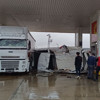Metrelerce sürüklenen minibüs, yol kenarındaki bir akaryakıt istasyonunda bulunan yakıt pompalarına çarparak durabildi.