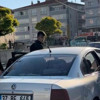 200 metre sonra aracın önünü keserek durduran Volkswagen sürücü, otomobilinden aldığı döner bıçağı ile oğlu ile birlikte diğer sürücünün üzerine yürüdü. Yanında diğer aile fertleri de olan baba ve oğlu, sürücüyü tehdit etti. O anlar bir vatandaşın cep telefonu tarafından kaydedildi.