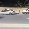Güvenlik kamerasına yansıyan görüntülerde M.A'nın otomobilin direksiyonuna geçmek için indiği sırada hırsızın hızla olay yerinden kaçtığı görülüyor. Görüntülerin devamında M.A'nın otomobilin peşinden koştuğu ve yere düşme anları kameraya yansıyor.