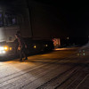 Ardahan'da etkili olan kar yağışı ve buzlanma nedeniyle bazı tırlar yolda kaldı.