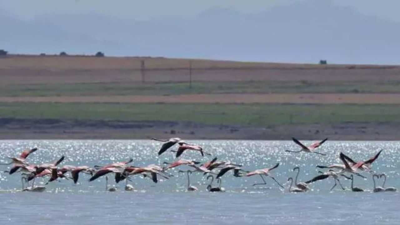 Bu yıl, önceki yıllara göre daha fazla sayıda flamingo Arin Gölü'ne geldi.