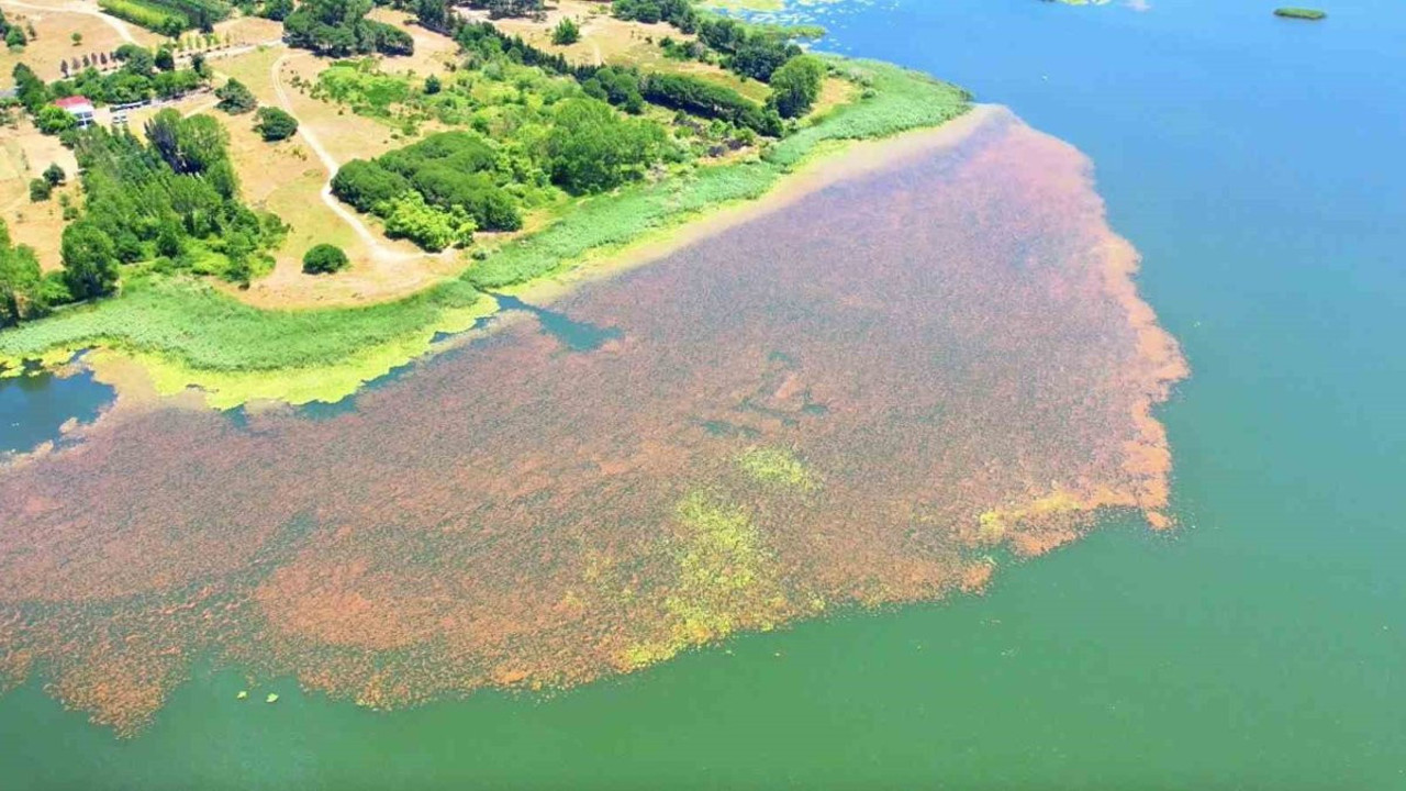 Durugöl adıyla bilinen Terkos Gölü’nün İstanbul Arnavutköy’deki kısmında, ilkbaharla birlikte yeşil bitkiler yüzeyde görsel bir şölen oluşturdu.