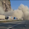 Öte yandan heyelan anı ise araç kamerasına yansıdı. Görüntülerde heyelan nedeniyle etrafı toz bulutu kapladı.