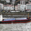 Artvin'in Hopa ilçesinde 27 Kasım Pazartesi günü, fırtına nedeniyle sürüklenerek karaya oturan, 13 kişilik mürettebatı sorunsuz tahliye edilen Palau bandıralı "FR Pearl" adlı kuru yük gemisi kıyıda bekletiliyor.
