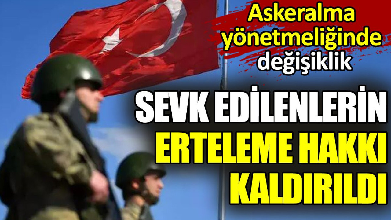 Resmi Gazete'de yer alan son düzenlemelere göre, askerlik hizmetini çeşitli sebeplerle ertelemiş olanlar, yoklama kaçağı veya bakaya olarak tespit edildikten sonra yapılan muayenelerinin ardından, belirtilen istisnai durumlar dışında, askerlik sevklerinde herhangi bir erteleme söz konusu olmayacak.