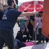 Yaralı kadın refüjde yatırılırken, seyyar satıcılardan biri plajlarda kullanılan, tezgahında korunmak için kullandığı plaj şemsiyesini alıp getirdi. Böylece kadının güneşten etkilenmemesi için çaba harcadı. İhbar üzerine olay yerine polis ve ambulans sevk edildi. İlk müdahalesi burada yapılan ve sağlık durumunun iyi olduğu belirtilen kadın, Murat Kölük Devlet Hastanesi’ne kaldırıldı.