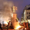 AP binasının önüne tekerlek, tezek ve odunları bırakan çiftçiler, Lüksemburg Meydanı'nda saman ve tezek balyalarını ateşe verdi.