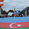 Türk ve Azerbaycan bayrakları taşıyan göstericiler, uluslararası topluma, Ermenistan’ın Gence’de sivillere yönelik saldırılarını durdurması ve Karabağ’da işgalin sona erdirilmesi için harekete geçme çağrısında bulundu.