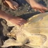 Olayı gören duyarlı vatandaşlar, caretta caretta'yı kurtarmak için hemen harekete geçti. Bir grup vatandaş, kaplumbağanın yanına giderek olta iğnesini dikkatlice çıkardı.