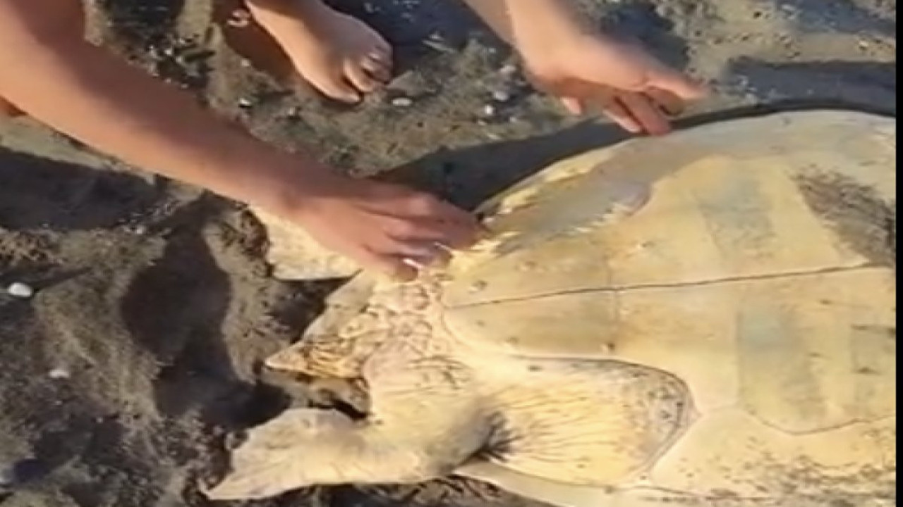 Muğla'da sahilde acı içinde çırpınan bir caretta caretta, vatandaşların hızlı ve duyarlı müdahalesi sayesinde hayata döndü. Ayağına takılan olta iğnesi nedeniyle büyük acı çeken deniz kaplumbağası, sahile vuran dalgalar arasında çaresizce çırpınırken fark edildi.
