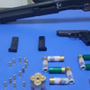 Otomobilde yapılan aramada1 adet pompalı tüfek ve onaait 14 adet kartuş, 1 adet tabanca ve bu tabancaya ait 22 adet mermi ele geçirildi.