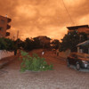 Söke''de de kuvvetli rüzgarla birlikte etkili olan toz taşınımı nedeniyle gökyüzü kızıla dönerken görüş mesafesi düştü.