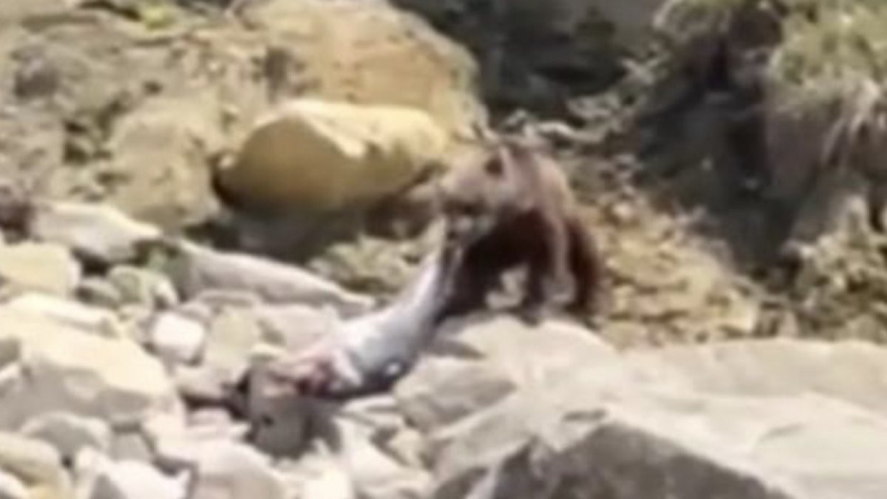 Sinop'un Türkeli ilçesine bağlı Taşgüney köyü sakinleri, deniz kenarında yiyecek arayan bir ayının ilginç bir davranışına tanıklık etti. Yiyecek arayışı sırasında ölü bir yunusa rastlayan ayı, bulduğu yunusu deniz kenarından alarak ormanlık alana doğru götürdü.