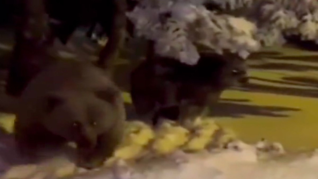 Uludağ'da bir türlü kış uykusuna yatamayan ayıları görünce ayı sesi çıkarmayaca çalışan vatandaş anne ayıyı sinirlendirdi.