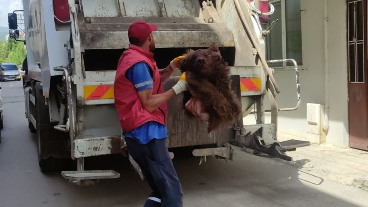Çöp konteynerlerinin içinde et parçası gören temizlik görevlileri durumu cep telefonundan 112'yi arayarak durumu ihbar ettiler. Olay yerine kısa sürede gelen polis ekipleri et parçalarının ayıya ait olduğunu tepit etti.