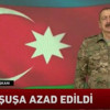 "İşgal atında olan Şuşa işgalden kurtarıldı. Bütün Şuşalıları yürekten tebrik ediyorum. 28 yıldır işgalde olan Şuşa artık kurtarıldı. Biz bur tarihi zaferi savaş meydanında kazandık. Şuşa’nın işgalden kurtarıldığı tarih ebediyen hatırlanacak. Biz bunu masa başında değil savaş meydanında kazandık. 30 yıla yakın manasız müzakereler bizi sorunun çözümüne yaklaştırmadı. Bizim topraklarımız 30 yıl işgal altında kaldı. Ermenistan müzakerelerle sadece zaman kazanmaya çalıştı. Azerbaycan’a muhtelif ülkelerden gelen mesajlar bizim barış yapmamız gerektiğini söylüyordu. Ama biz siyasi irade göstererek Azerbaycan halkının çıkarlarına aykırı hiçbir şeye müsaade etmedik."