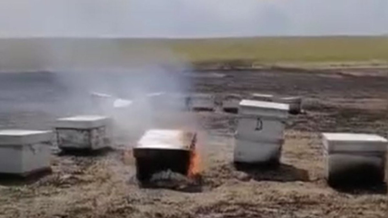 Henüz kimin tarafından yakıldığı belirlenemeyen anız yangını, rüzgarında etkisiyle büyüyerek bölgede arıcılık yapan bir vatandaşın kovanlarına sıçradı.