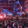 Alanda yer bulamayan bazı taraftarlar, Atatürk Alanı’nda bulunan ağaçlara ve kamelyalara tırmanarak kutlamaları izledi. Taraftarların doldurduğu caddelerde araçlar konvoy oluşturdu.