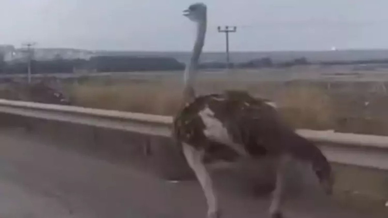 Fırat Özateş’in bakımını üstlendiği deve kuşu, bir arkadaşının hediye ettiği hayvan, iş yerinin bahçesinden kaçtı ve karayolunda koşmaya başladı. O anlar, sürücülerin zor durumda kaldığı anlar cep telefonu kamerasıyla kaydedildi.