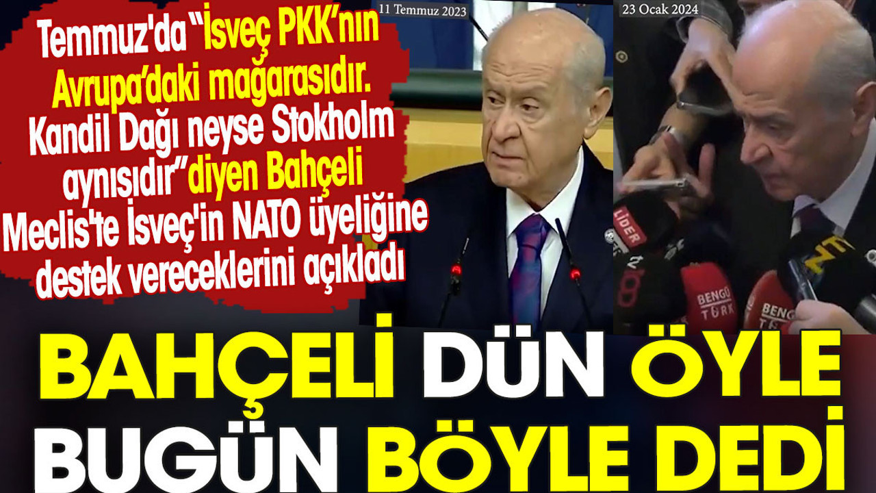 Temmuz'da “İsveç PKK’nın Avrupa'daki mağarasıdır. Kandil Dağı neyse Stokholm aynısıdır” diyen Bahçeli Meclis'te İsveç'in NATO üyeliğine destek vereceklerini açıkladı