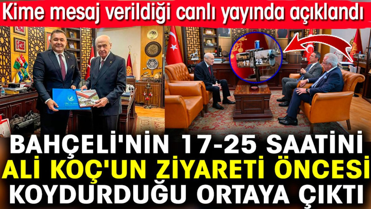 Bahçeli’nin Ali Koç ile yaptığı görüşmede ’17-25 saati’ ile kimlere mesaj verdiği merak konusu oldu. Yeniçağ yazarı Fatih Ergin, konuyla ilgili Sözcü TV’de yaptığı açıklamada son 1 sene içinde Bahçeli ile görüşüp makamında fotoğraf çektirenlerle konuştuğunu söyledi. Ergin, görüştüğü isimlerden hiçbirinin Bahçeli’nin makamında söz konusu saat görmediklerini vurguladı. Ergin, saatin yakın tarihte oraya konulduğunu MHP Genel Merkezi’nden bazı isimlerden öğrendiğini söyledi.