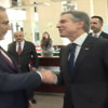 Blinken'ın, karşılama esnasında Bakan Fidan'a sarılmak için hamle yaptığı ancak Fidan'ın, Blinken'ın bu hamlesine karşılık vermediği ve iki mevkidaşın sadece tokalaştığı görüldü.