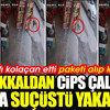 Bakkaldan cips çalan karga suçüstü yakalandı! Etrafı kolaçan etti paketi alıp kaçtı