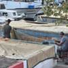 Marmara Denizi'nde etkili olan sert poyraz balıkçıları vurdu. Fırtınada teknelerini limana demirleyen balıkçılar ağ ve teknelerine bakım yaparak zaman geçiriyor.