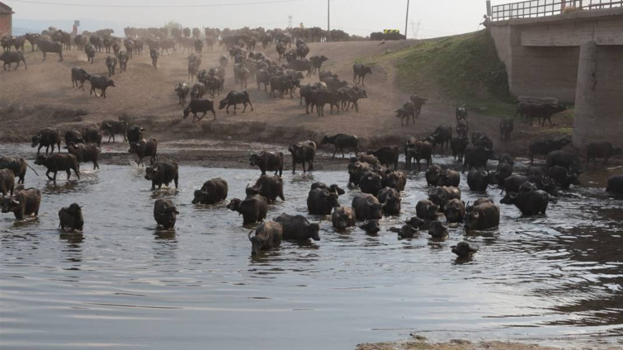 Balıkesir’in Altıeylül ilçesine bağlı Balıklı ve Yakupköy kırsal mahallelerinde manda yetiştiriciliği önemli yer tutarken, merada otlayan mandaların ahırlarına dönüşleri ise Afrika belgesellerini aratmayan görüntüler oluşturuyor.