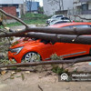 Ağaç, itfaiye ekipleri tarafından kesilerek bulunduğu yerden kaldırılırken araçta büyük hasar oluştu.