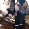 İzmir'in Çiğli ilçesinde öfkelenen sendika temsilcisi, müdür odasına balyozla dalarak masayı parçaladı, ortalığı savaş alanına çevirdi.
