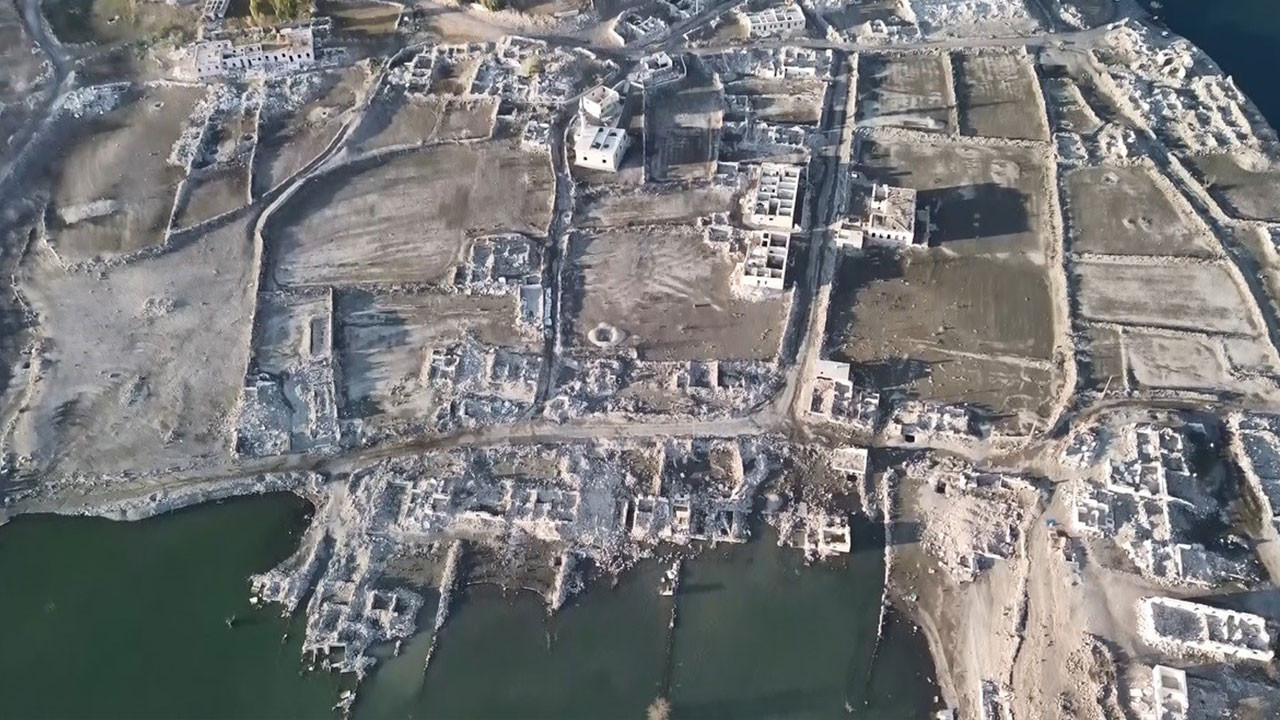 Su seviyesinin düşmesi sonucu, eski yerleşim yerinde bulunan köy evleri, cami, kilise ve diğer yapılar tekrar görünür hale gelirken, vatandaşlar, baraj gölünün yaklaşık 50 metre çekildiğini belirtti.