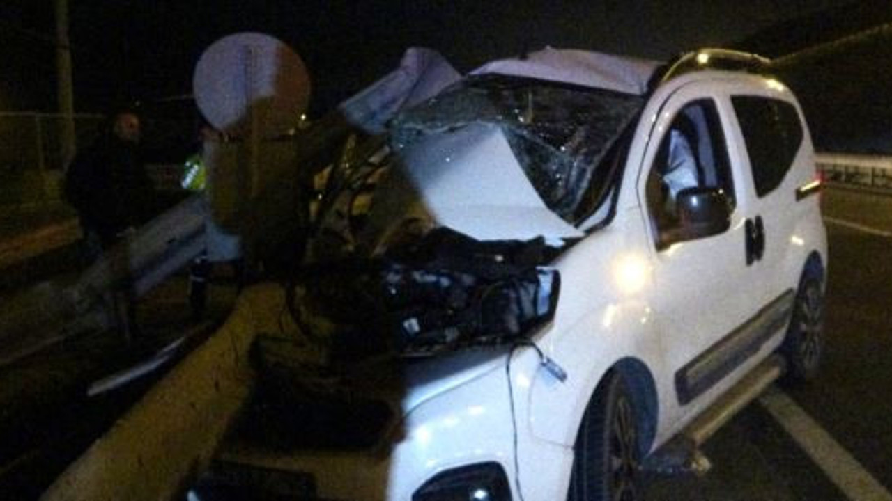 Çarpmanın şiddetiyle aracın ön camından giren çelik bariyer, arka koltuğa kadar ilerledi. Kazada, sürücü Ersin B., ön tarafta oturan annesi Nuriye B., babası Mehmet B. yaralandı.