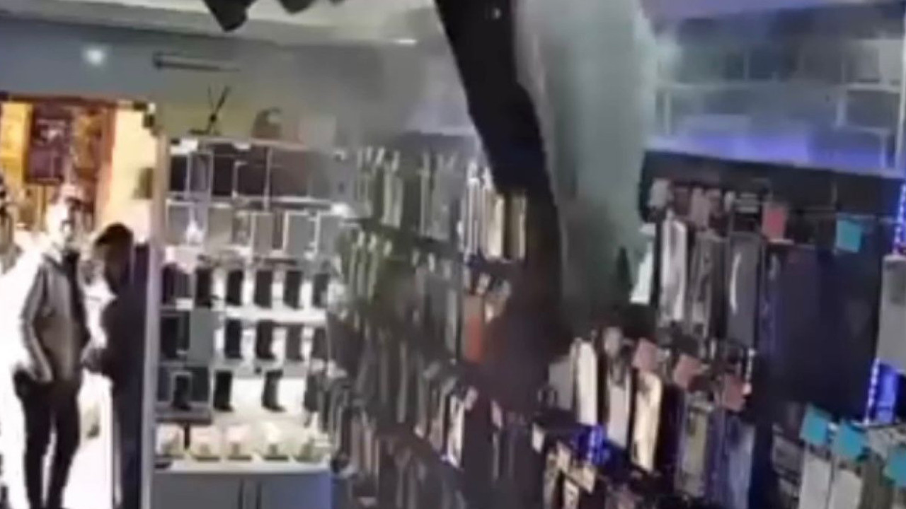 Olay, dün akşam saatlerinde Hükümet Caddesi'nde, telefon aksesuarı satan dükkanda meydana geldi. İş yeri sahibi Emre Sesver'in (52) arkadaşı üst kata çıktığı sırada, tavan çöktü. O anlar güvenlik kamerasına yansırken, Sesver'in arkadaşının sol bacağının yukarıdan sarktığı görüldü.