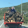 4 kişinin, hızlı giden kamyonetin kasasındakiodunlarındallarınınüzerine oturarak seyahat etmesi,diğer sürücüleri korkuttu.Sürücüler,tehlikeli anları cep telefonu kamerasıyla görüntüledi.
