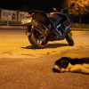 Seyir halindeyken aniden önüne çıkan başıboş sokak köpeğine çarpan motosiklet sürücüsü ölümden döndü.