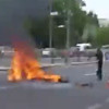 Kağıt toplayıcılığı yapan vatandaş meclisin bulunduğu cadde üstünde çekçekini ateşe verdi. Boğazına bıçak dayayan vatandaş, "Mazota zam, her şeye zam nedir bu?" diye tepki gösterdi.