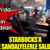 Bu sırada gruptakilerden bazıları, bulvardaki bir alışveriş merkezinin giriş katında bulunan bir kahve zinciri şubesine İsrail destekçisi olduğu gerekçesiyle taş, sopa ve sandalyelerle saldırdı.