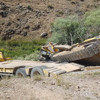 Bayburt Özel İdaresi''ne ait iş makinesi, çekicinin üzerinden dereye devrildi. 1 kişi yaralandı.