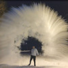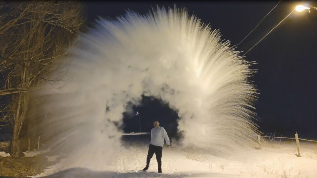 Kentteki çeşme ve su göletlerinin yüzeyi de buz tuttu. Havaya serpilen sıcak su donup kristalleşti ve bu, etkileyici görüntüler oluşturdu.