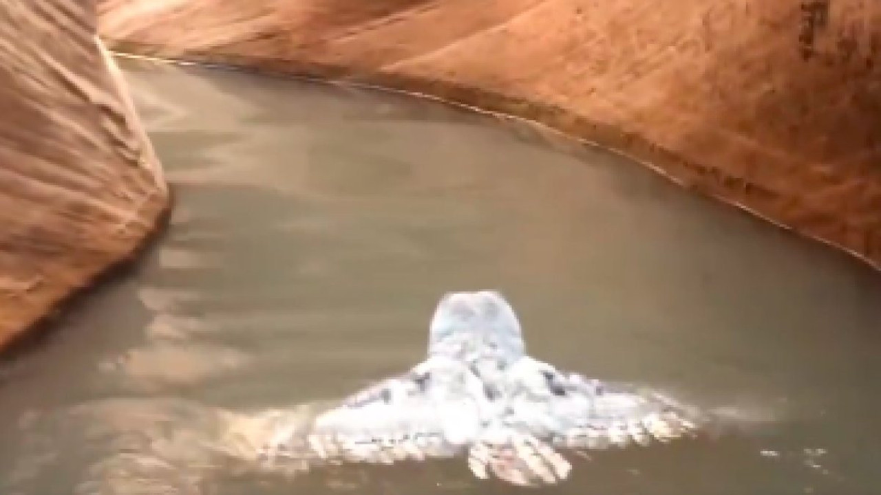 Bir baykuşun, suda kanatlarını çırparak yüzdüğü anlar, sosyal medyada hızla yayılarak milyonlarca kişinin dikkatini çekti.